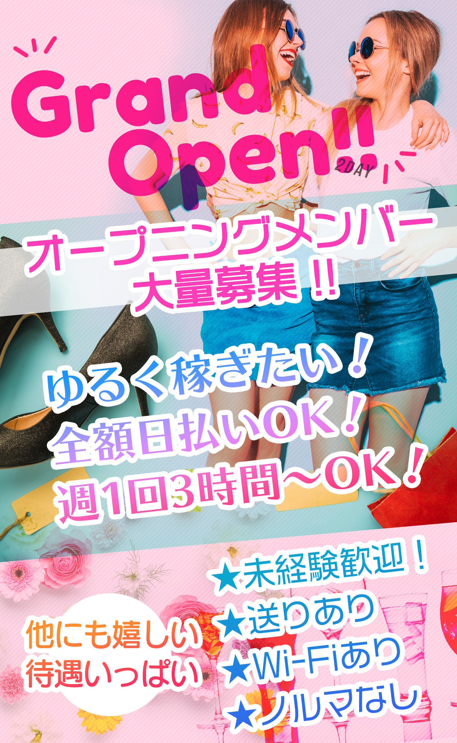 ◆全額日払いOK ◆ナイトデビュー!業界未経験でもOK ◆経験のある方は各種優遇あり ◆Wワーク大歓迎 ◆送りあり ◆入店祝い金あり ◆終電あがりOK ◆3h以内の勤務OK ◆寮完備 ◆衣装のレンタル可能 ◆ニューオープンのため派閥なし ◆土日営業あり ◆何回か体験入店OK ◆ノルマなし ◆お酒が飲めなくてもOK |